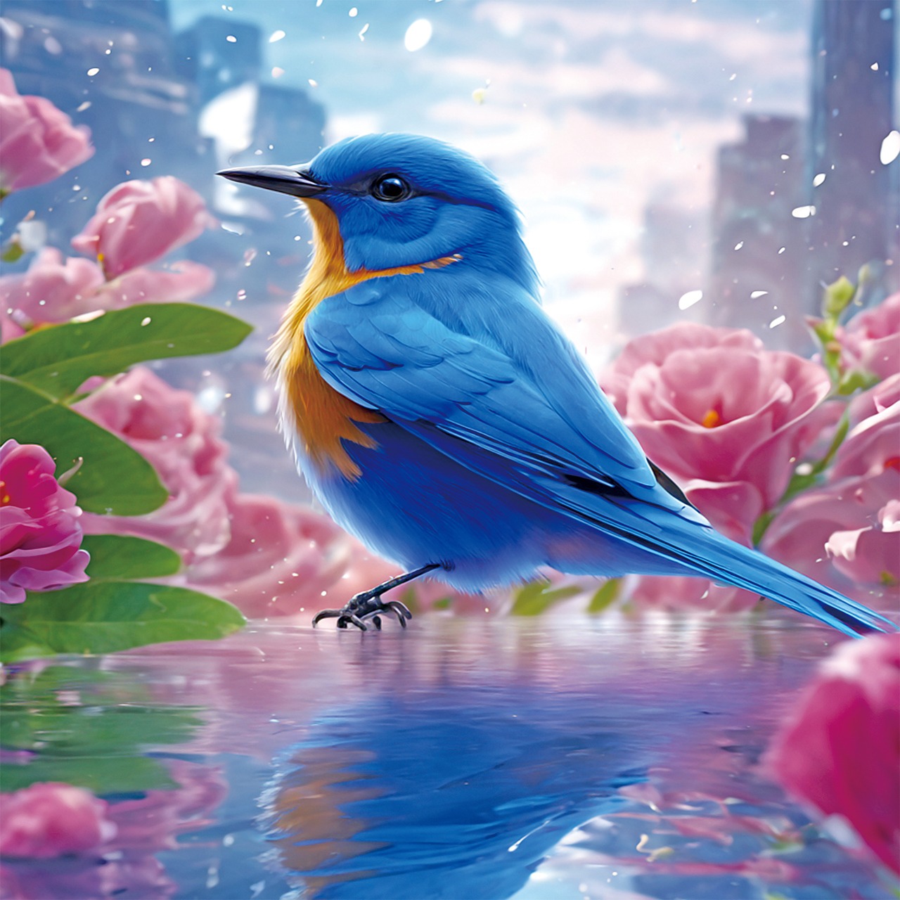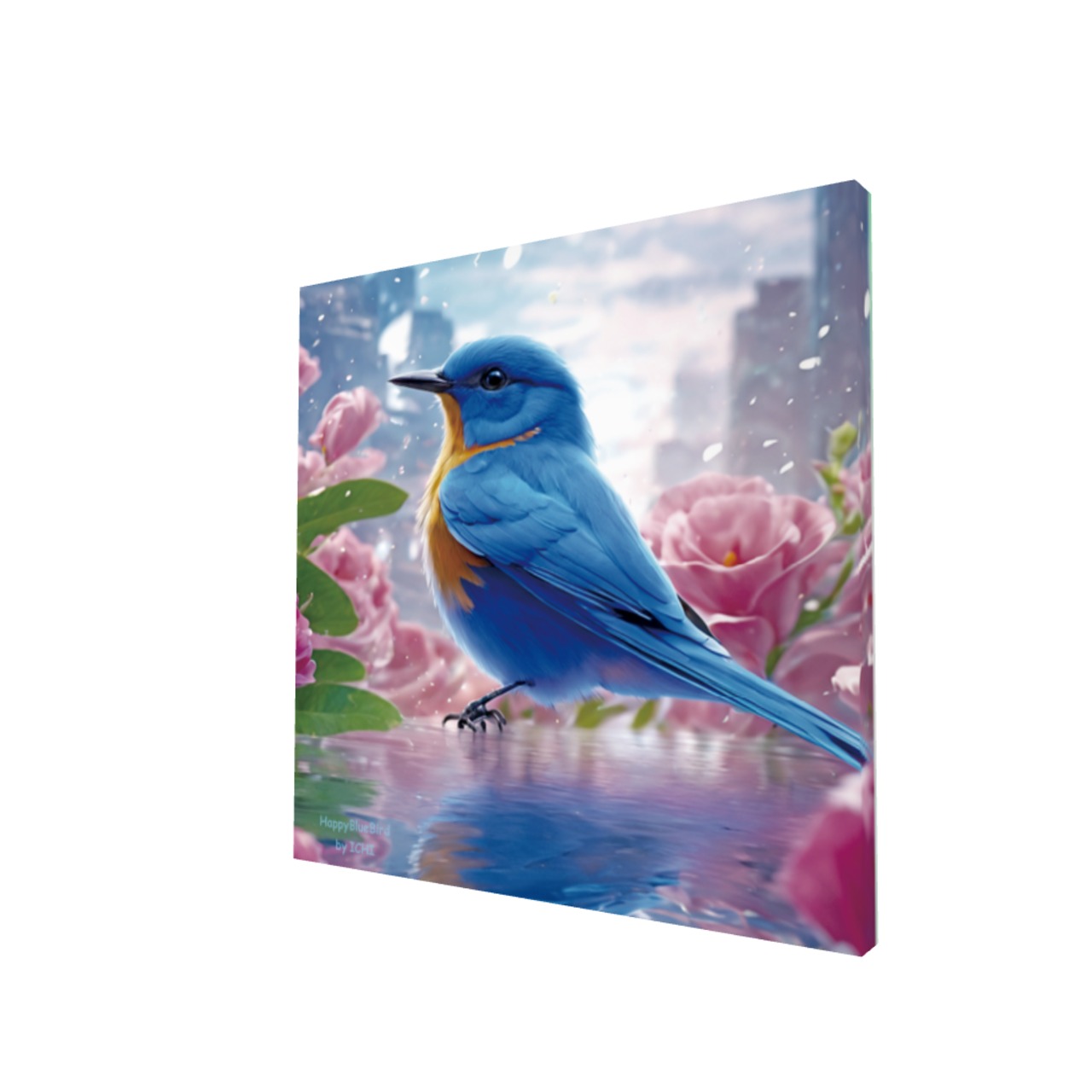 この作品は、豊かな水、そして幸せを象徴する青い鳥、そして鮮やかな花々が描かれています。壁を飾るだけで、あなたの空間に幻想的な雰囲気を演出すること間違いなしです。